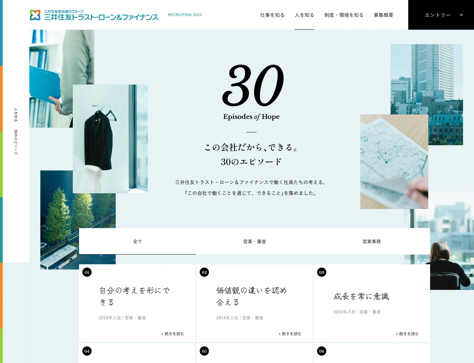 不動産を担保に法人・個人に融資を行う三井住友トラスト・ローン&ファイナンス。ここで紹介する新卒サイトの他に,中途サイト,採用冊子を作成した。