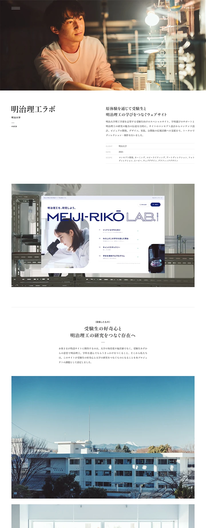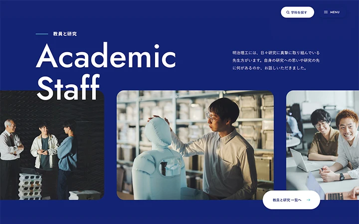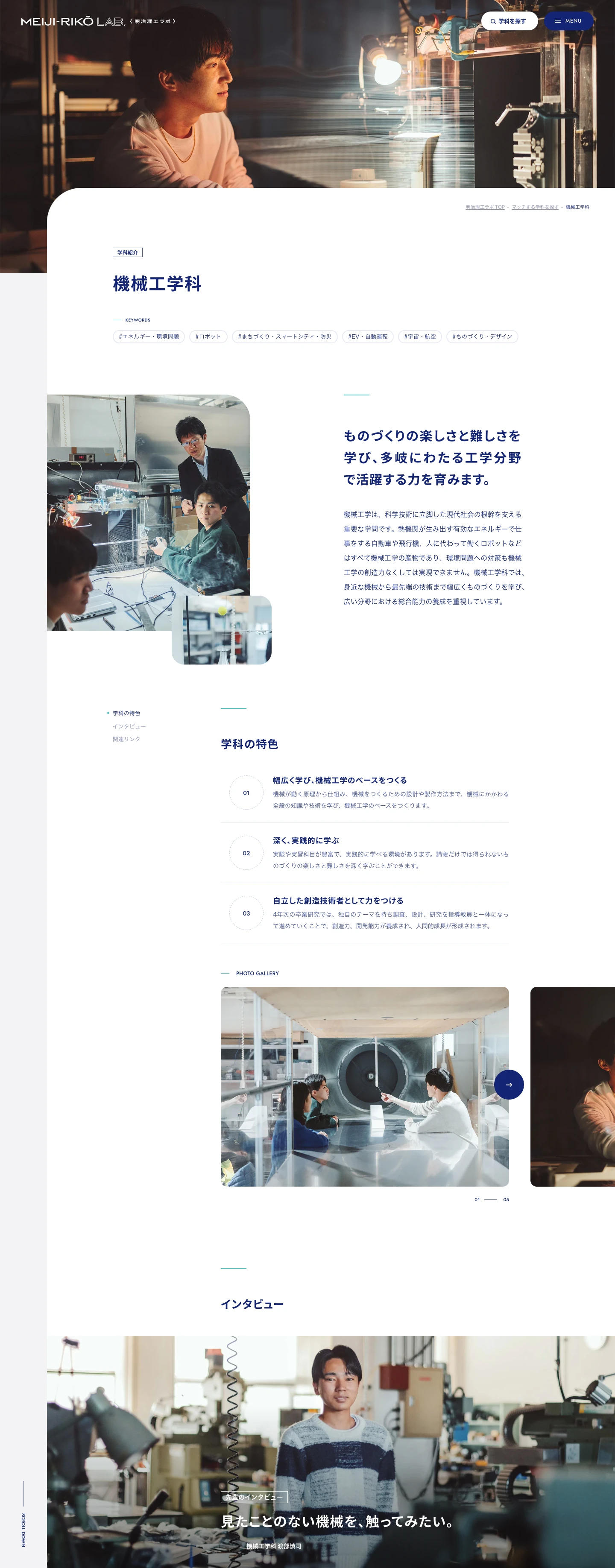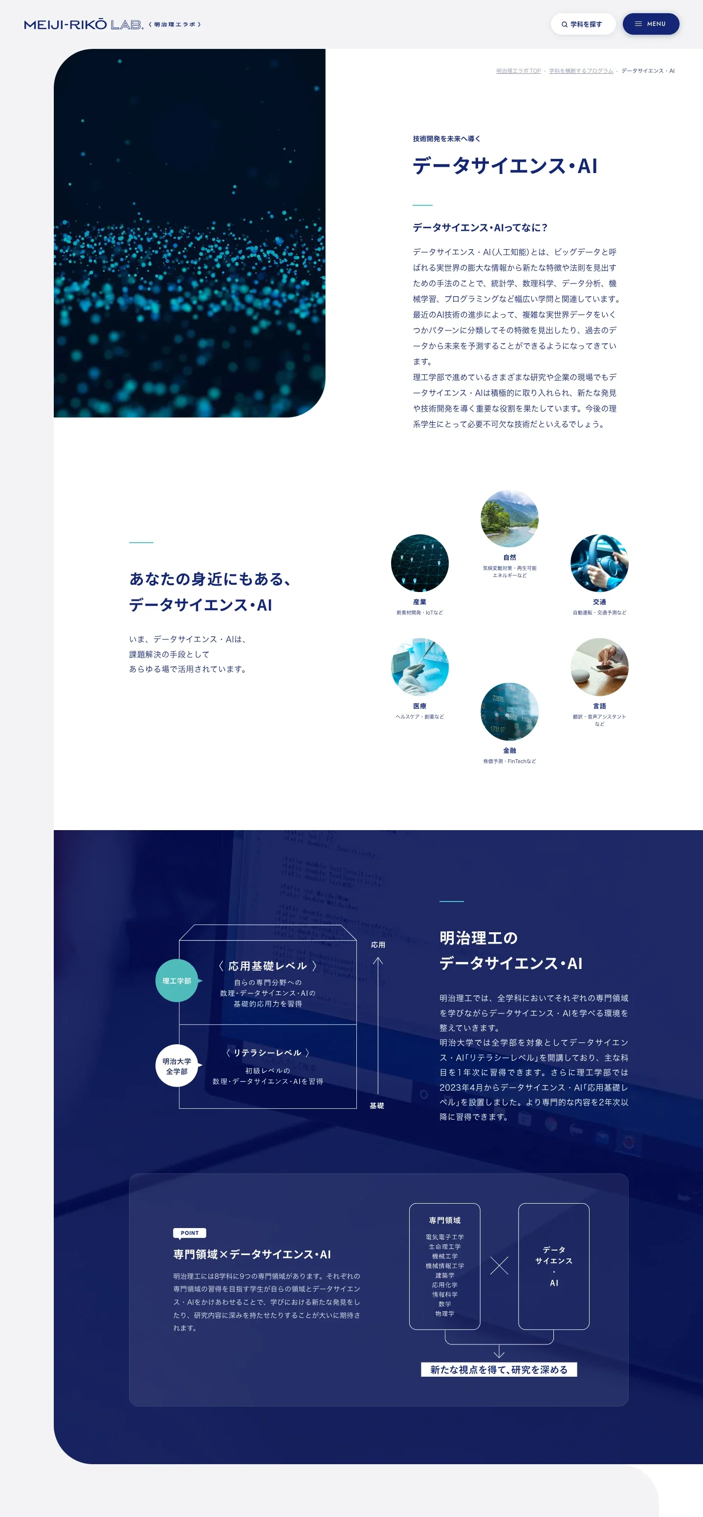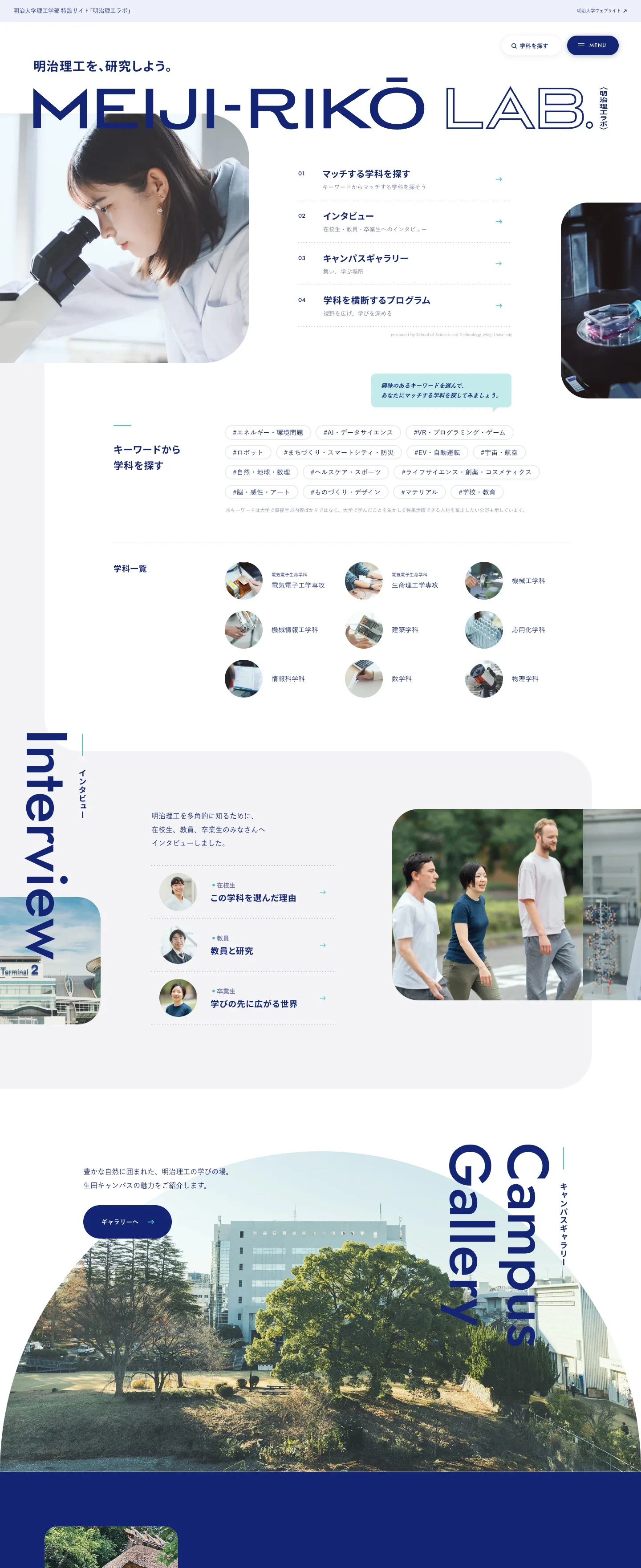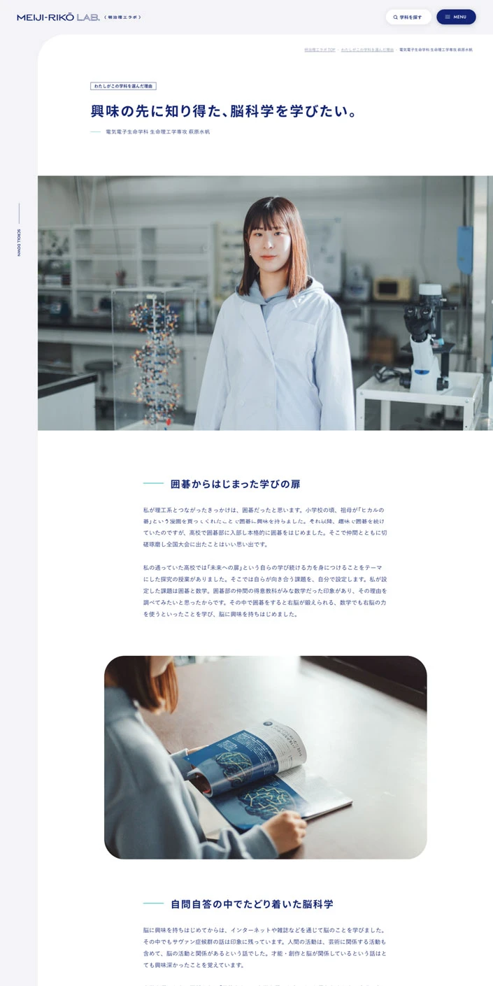 学科選びのサポートと学部の魅力の伝達を目的とした明治大学理工学部の受験生向けの特設サイト。