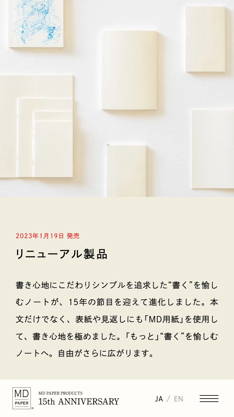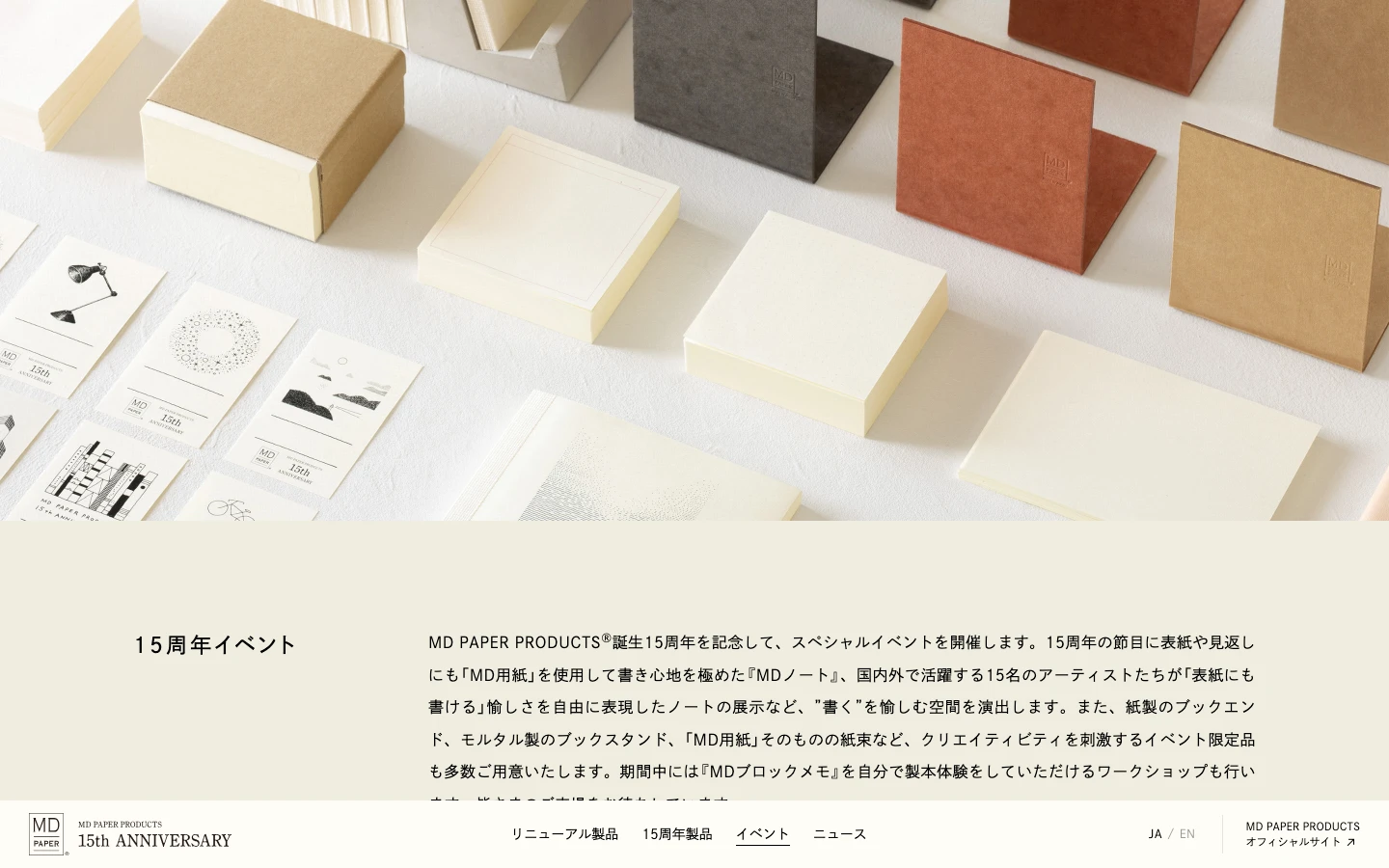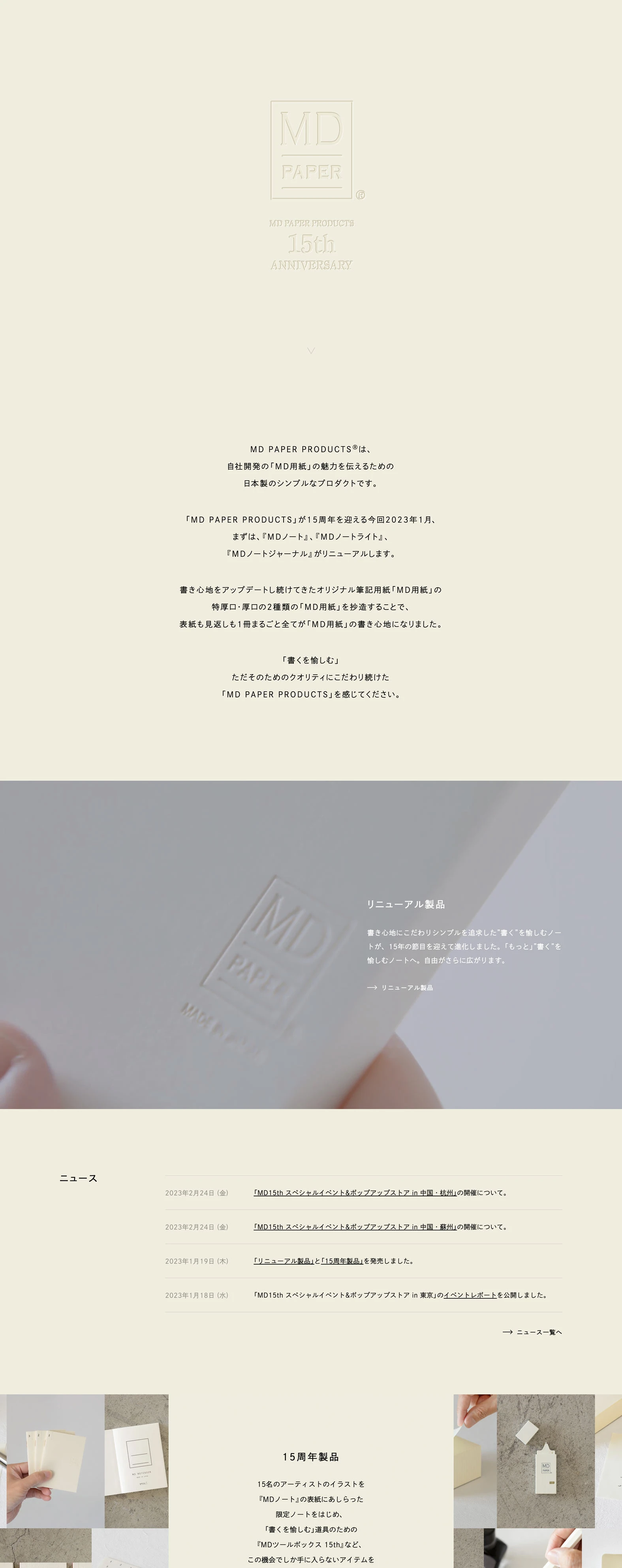 文具ブランド「ミドリ」の看板製品,MDペーパープロダクトの15周年サイト。
