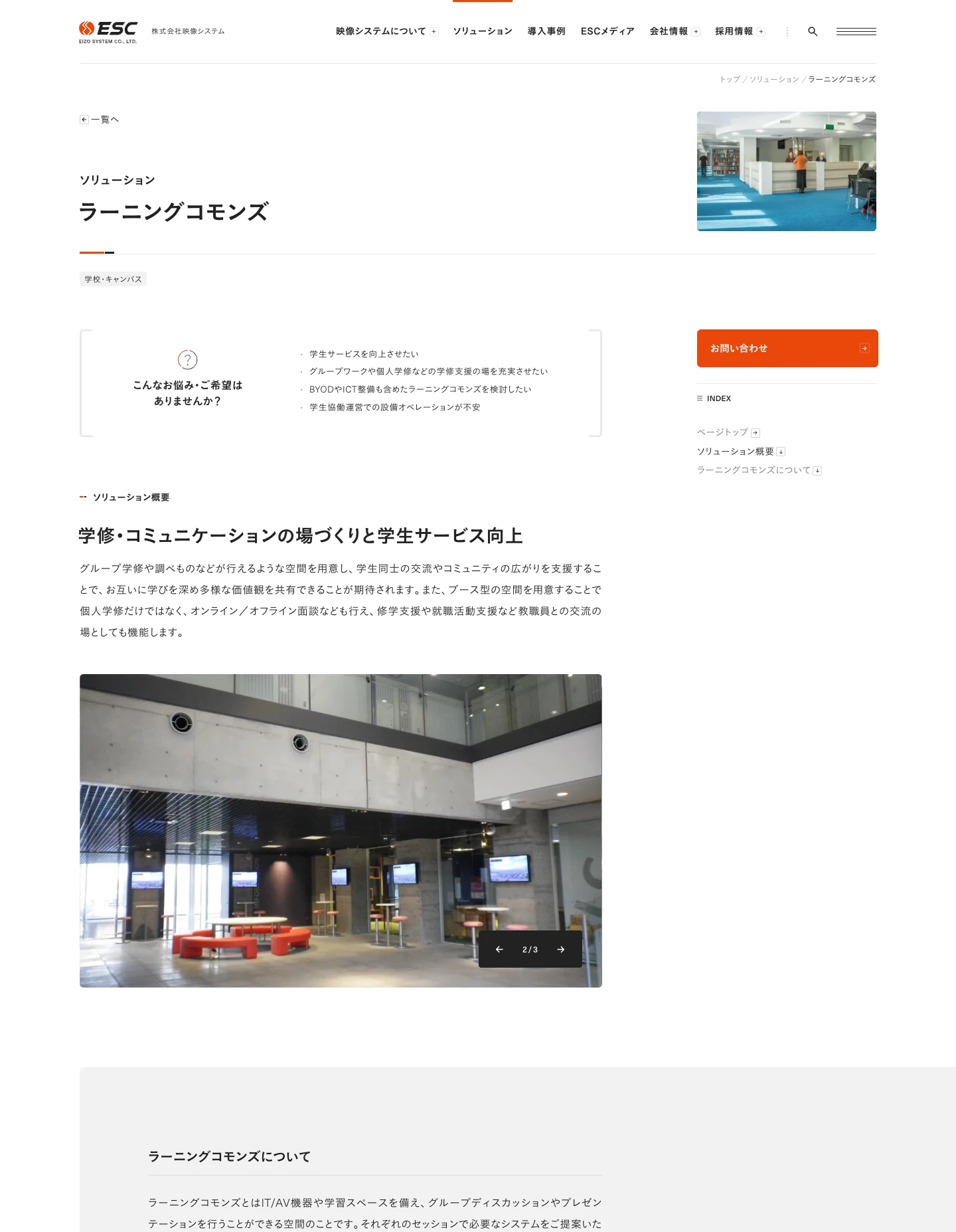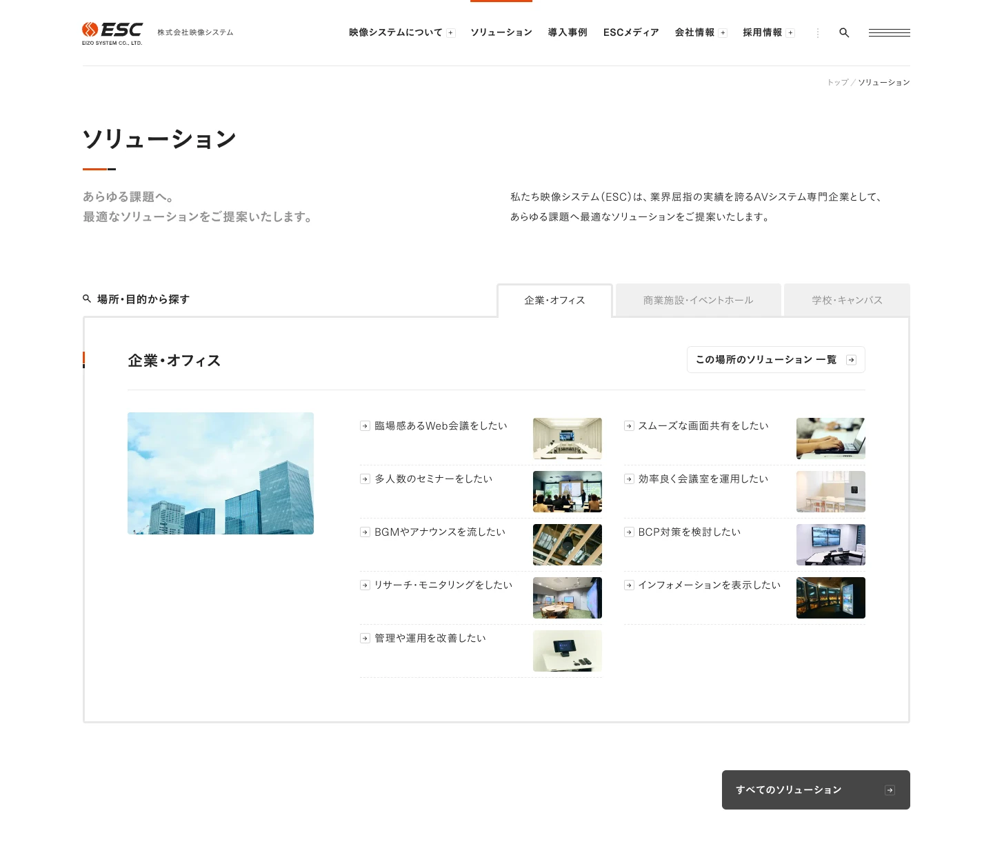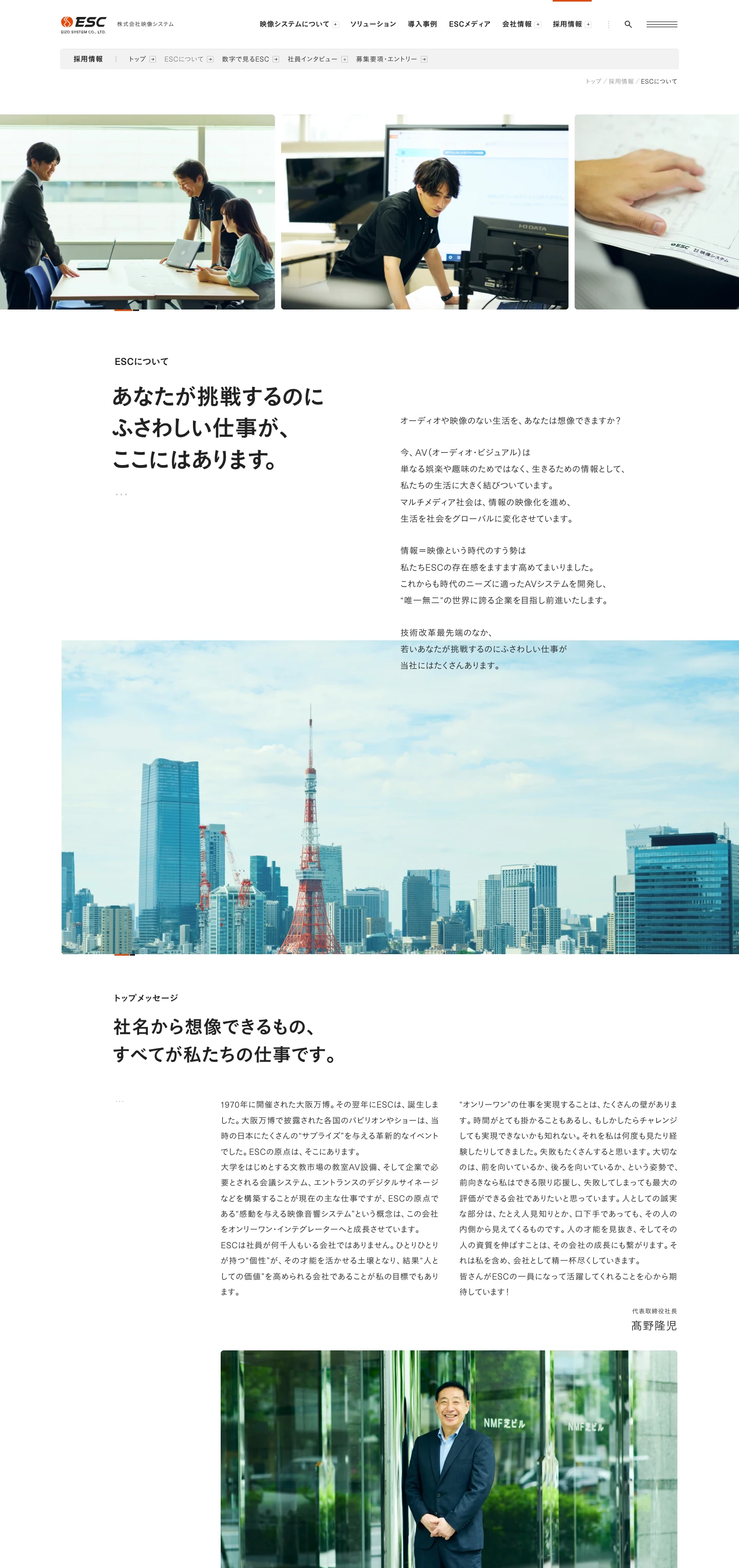 映像・音響のトータルソリューションを提供する映像システムのコーポレートサイトリニューアル。創業53年を迎えるタイミングで新たに制定されたミッション・ビジョン・バリュー(MVV)をウェブ上で表現していくことが主な目的だった。