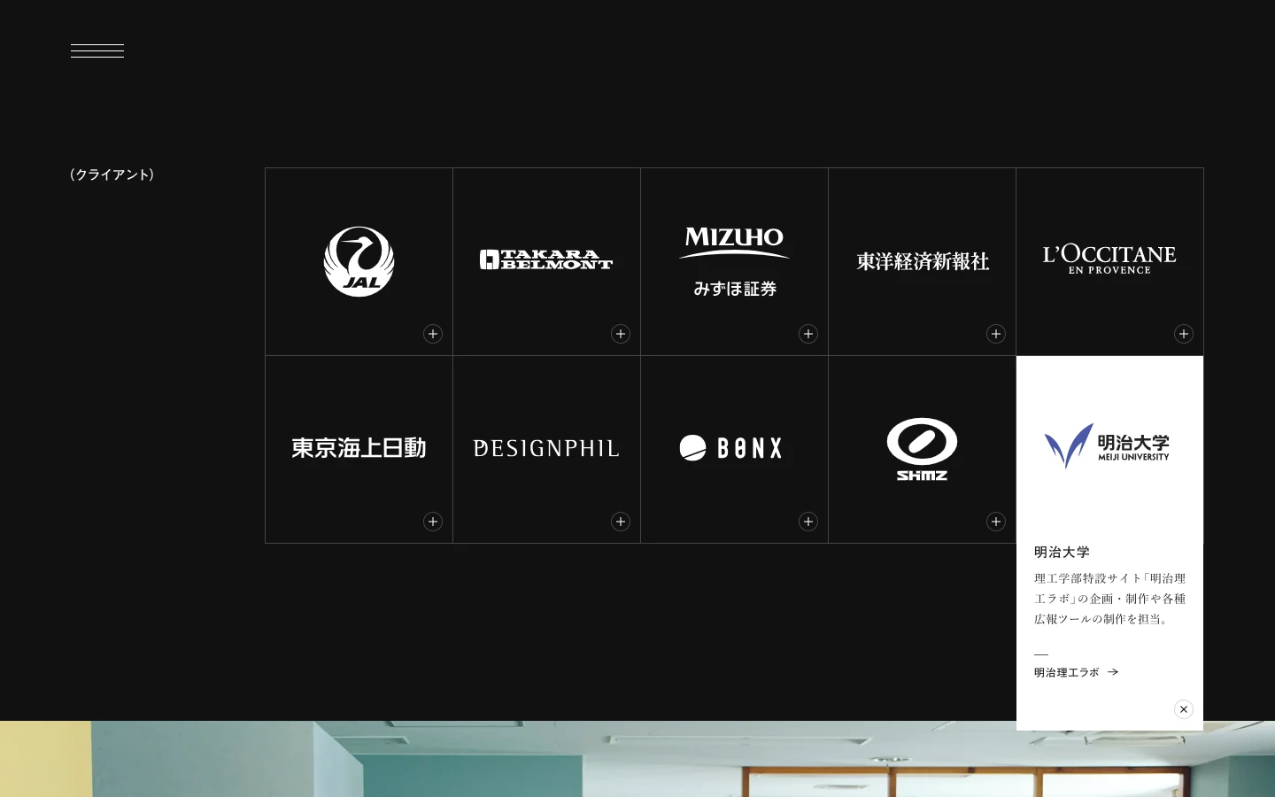 句読点のぶら下がりやグリッドによるレイアウトの制御などを行うJS/SCSSコードを自作したり,和文書体・かな書体・欧文書体で(本文も含めて)混植をしたりと,グラフィックでのデザイン手法をウェブ上で再現し,同社のルーツであるタイポグラフィを軸とした表現に挑戦した。