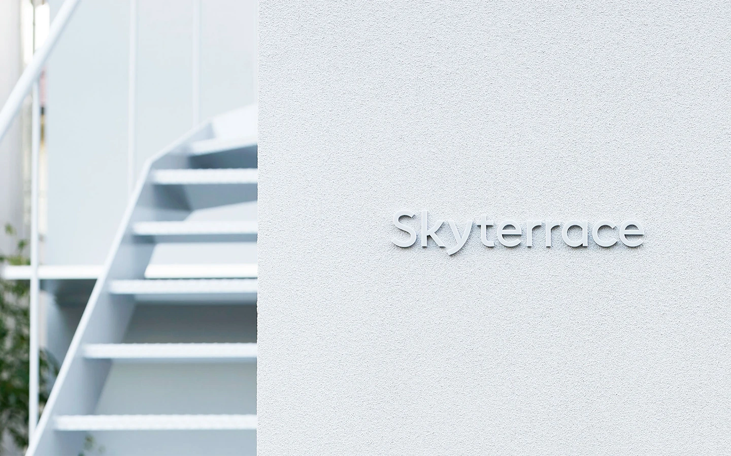 都内の集合住宅「Skyterrace」のためのロゴおよびサイン(部屋番号)のデザイン。